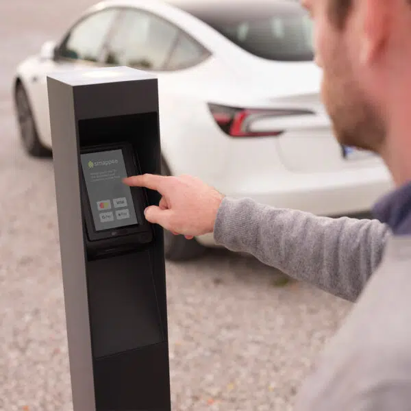 Make charging payments simple and hassle-free for visitors. With the Smappee Pay Station, you can connect multiple AC and DC charging points to a single terminal, reducing equipment, installation, and maintenance costs. Supporting both Mastercard and Visa, drivers can pay quickly and continue their journey. Fully AFIR-compliant and future-ready, it will also support Plug & Charge and adapts to new payment technologies.